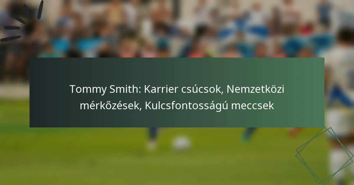Tommy Smith karrierjét számos kulcsfontosságú mérkőzés határozta meg, amelyek bemutatták képességeit és kitartását a pályán. Ezek a magas tétű mérkőzések nemcsak képességeit emelték ki, hanem örökségét is formálták a nemzetközi futballban.